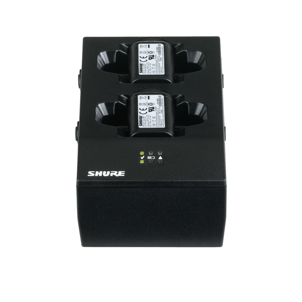 Dual docking recharging station charges SB900A batteries in or out of their transmitters. Features include the ability to run up to 4 SBC200 stations off 1 power supply.